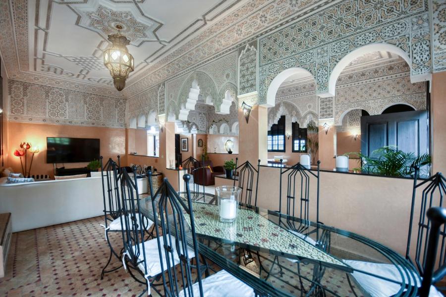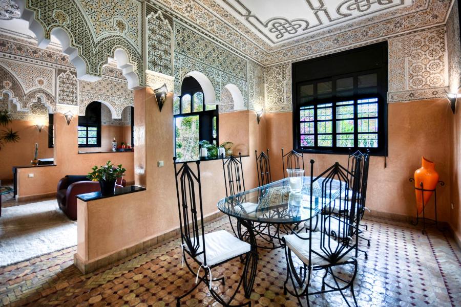 Ce riad spacieux comprend 4 chambres, une télévision à écran plat avec des services de streaming ainsi qu'une cuisine entièrement équipée avec un lave-vaisselle, un four, un lave-linge, un micro-ondes et un grille-pain. Doté de la climatisation, ce logement dispose d'un dressing et d'une cheminée. Le riad propose du linge de lit, des serviettes et un service de repassage.