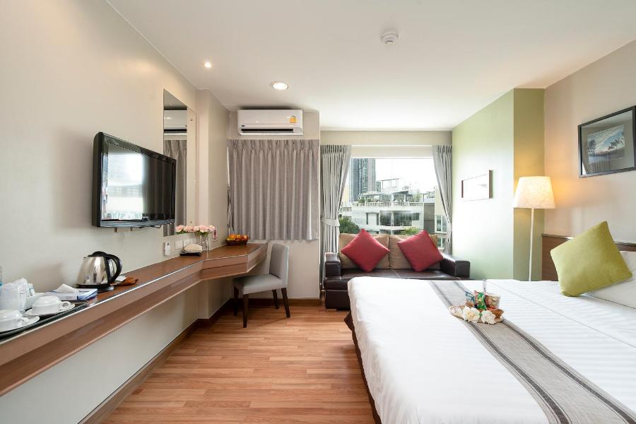 Les chambres de l'hôtel disposent d'un coin salon, d'une télévision par câble ainsi que d'une salle de bains privative avec articles de toilette gratuits et bidet. Toutes les chambres du Bangkok Loft Inn comprennent la climatisation et une armoire.