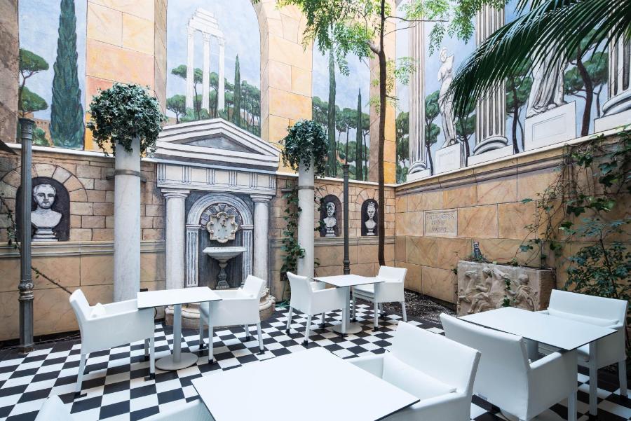 L'hôtel Catalonia Roma possède une réception ouverte 24h/24 et ornée d'un grand puits de lumière en vitraux. Des services de change et de location de voitures y sont assurés.