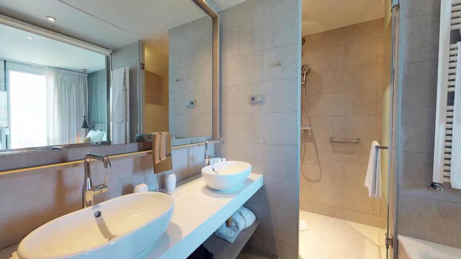 Toutes les chambres spacieuses du Melia Barcelona Sky comprennent une télévision à écran plasma de 81 cm et offrent une vue sur la ville. Les élégantes salles de bains sont équipées d'une douche à effet pluie.