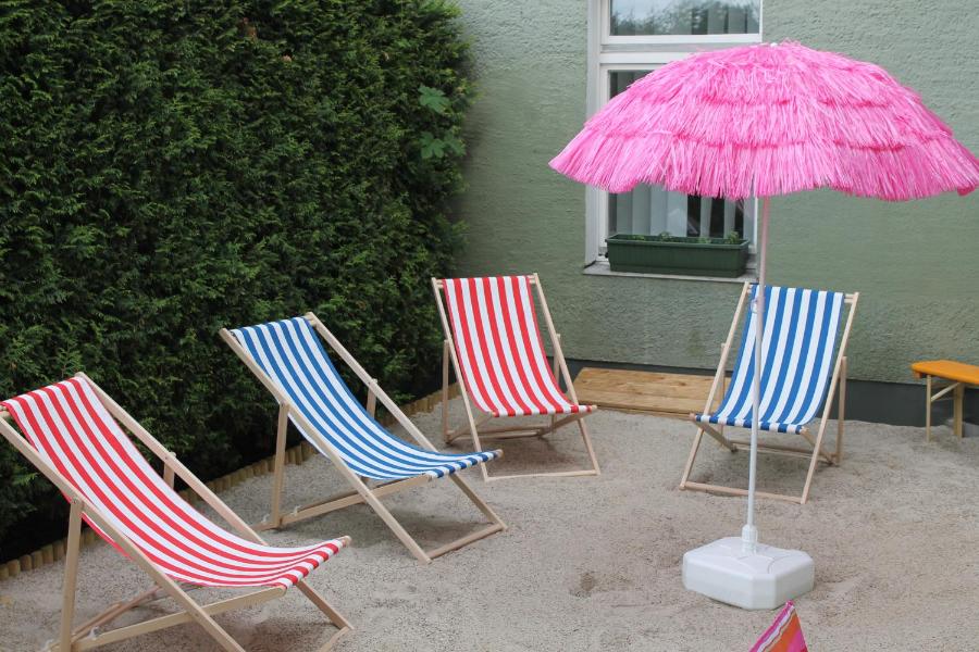 During the summer months guests can enjoy their meal in the courtyard. The deck chairs in Apartments Kolo 77's beach area provide the perfect opportunity for relaxing.