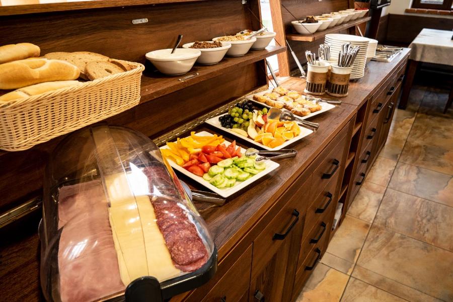 Le restaurant confortable dispose d'une cheminée et vous pourrez déguster des vins moraves et internationaux.