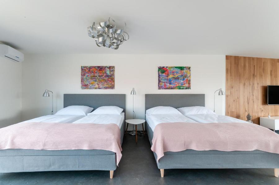 Les chambres modernes sont toutes équipées d'une connexion Wi-Fi gratuite et d'une télévision par satellite à écran LCD. Elles sont décorées dans des tons blanc et gris, avec une touche de couleur vive sur certains murs.