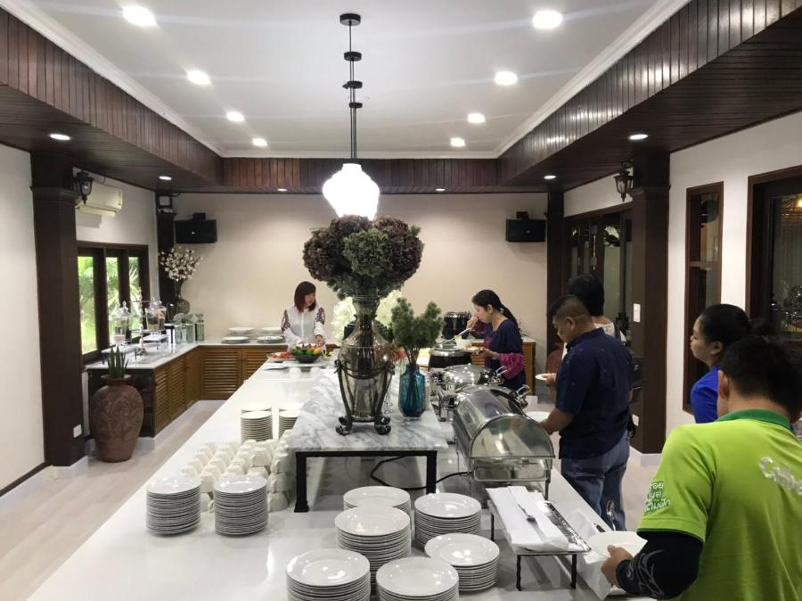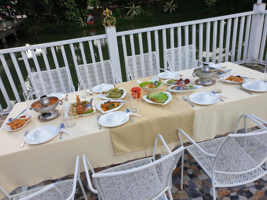 Le restaurant Charkom sert des spécialités thaïlandaises préparées par des chefs expérimentés. Sa terrasse surplombe un lac.