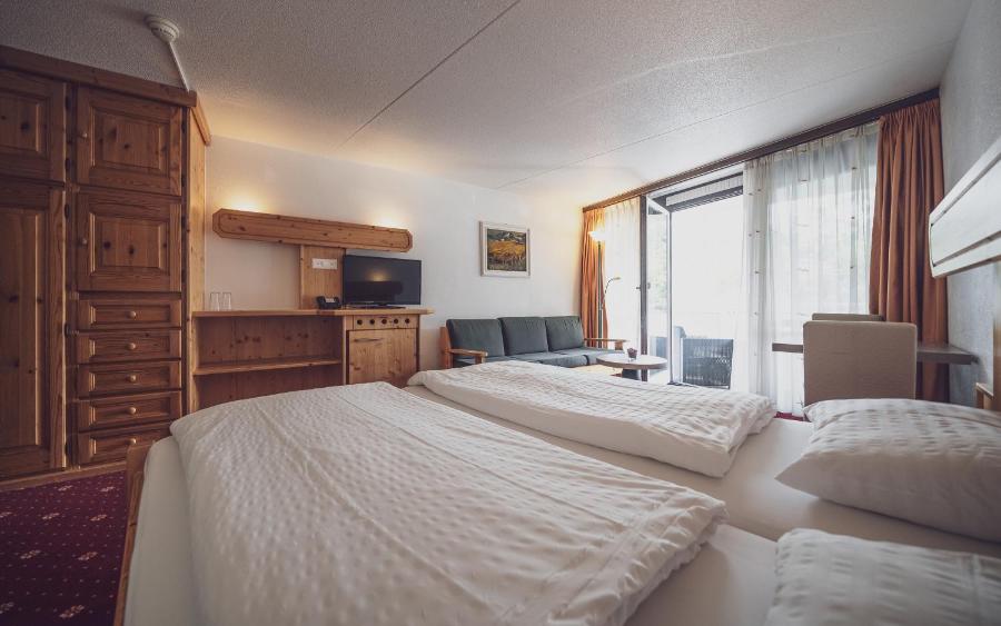 Rooms at the Davos Clubhotel are furnished in a classic Alpine style and feature a TV and a bathroom with a bath and a hairdryer.