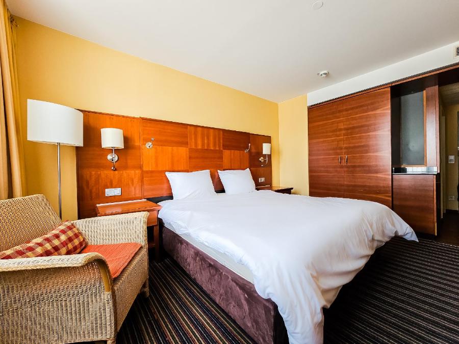 Les chambres climatisées comprennent un bureau, une machine à café, un réfrigérateur, un coffre-fort, une télévision à écran plat et une salle de bains privative avec douche. Le linge de lit et les serviettes sont fournis.