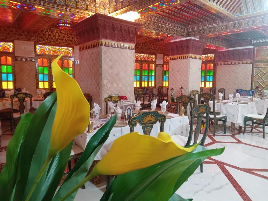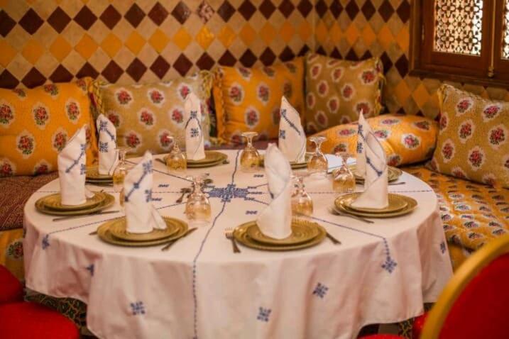 Chaque matin, le riad sert un petit-déjeuner continental et végétarien composé de spécialités locales, de viennoiseries fraîches et de fruits. Vous pourrez dîner dans le restaurant familial sur place, spécialisé dans la cuisine marocaine et proposant également des plats végétariens, végétaliens et sans produits laitiers.