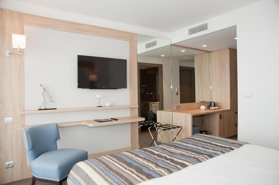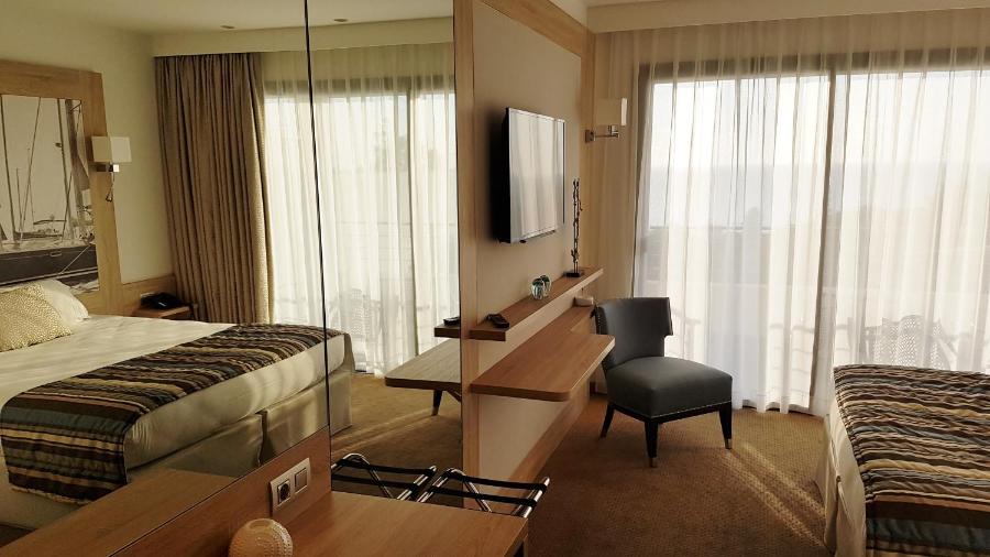 Chaque chambre climatisée dispose d'une télévision, d'une bouilloire électrique, d'un minibar et d'un balcon (ou d'une terrasse) offrant une vue partielle ou panoramique sur la mer.