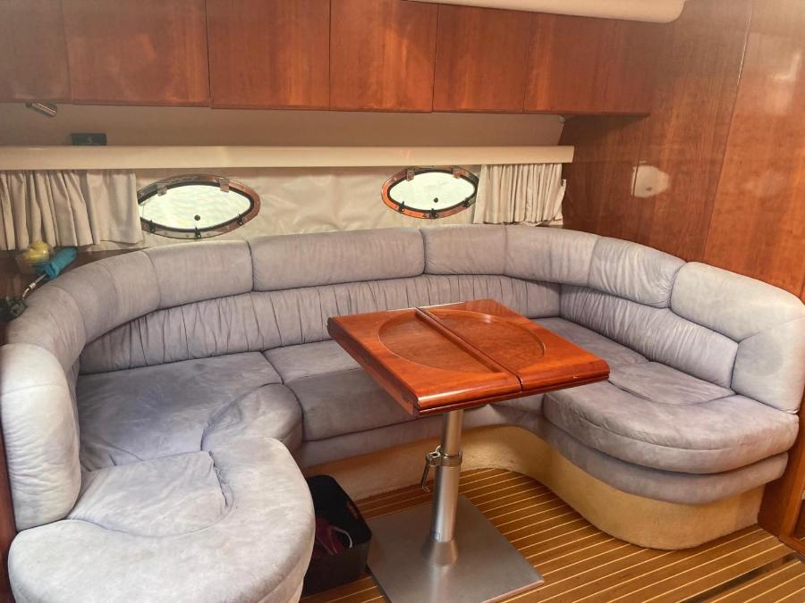 The boat features 2 separate bedrooms and includes a fully equipped kitchenette with an oven, fridge and dining area. Guests can enjoy a meal on an outdoor dining area while overlooking the sea views. For added privacy, the accommodation has a private entrance and is protected by full-day security.