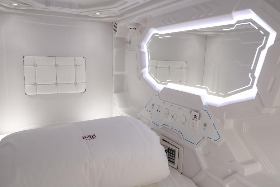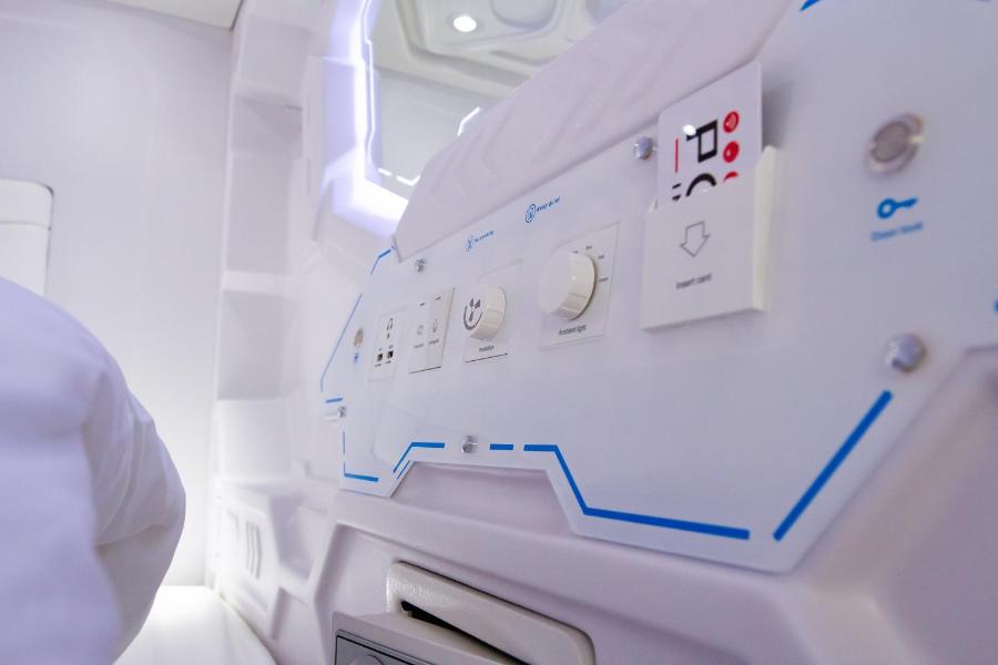 À l'hôtel, chaque lit capsule comprend un store ou une porte privée. Des matelas, des oreillers et des couettes de qualité sont fournis pendant votre séjour. Chaque lit capsule est équipé de lampes de lecture, d'un miroir, de lampes murales, de ports de recharge USB, d'un ventilateur et d'un casier sécurisé. Les capsules de l'entrée latérale comprennent un coffre-fort et un petit bureau pour ranger votre ordinateur portable.