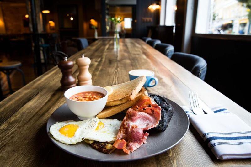 Le pub chic et accueillant sert une sélection de plats copieux et de boissons.