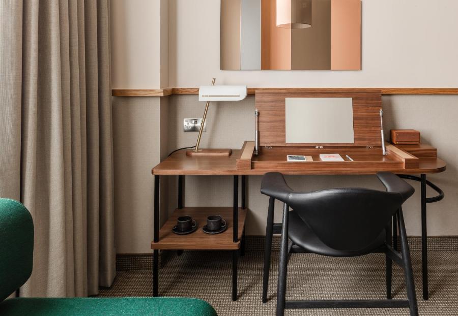 Les élégantes chambres sont pourvues d'un bloc de charge à côté du lit et d'un espace de travail multi-usages doté d'une lampe articulée.