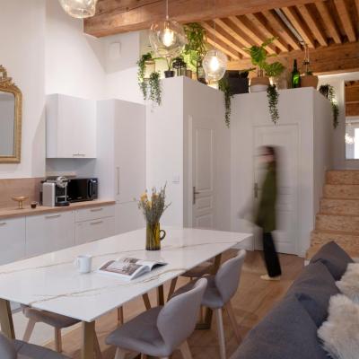 La Loge Du Vieux Lyon propose un hébergement indépendant dans un bâtiment historique en plein coeur de Lyon, à 600 mètres de la célèbre place Bellecour. La connexion Wi-Fi est gratuite. L'appartement comprend une télévision à écran plat, une salle de bains privative avec douche et sèche-cheveux, ainsi qu'une cuisine entièrement équipée avec une cuisinière, un lave-vaisselle, un micro-ondes et une cafetière Nespresso. Le linge de lit, les serviettes, les articles de toilette ...