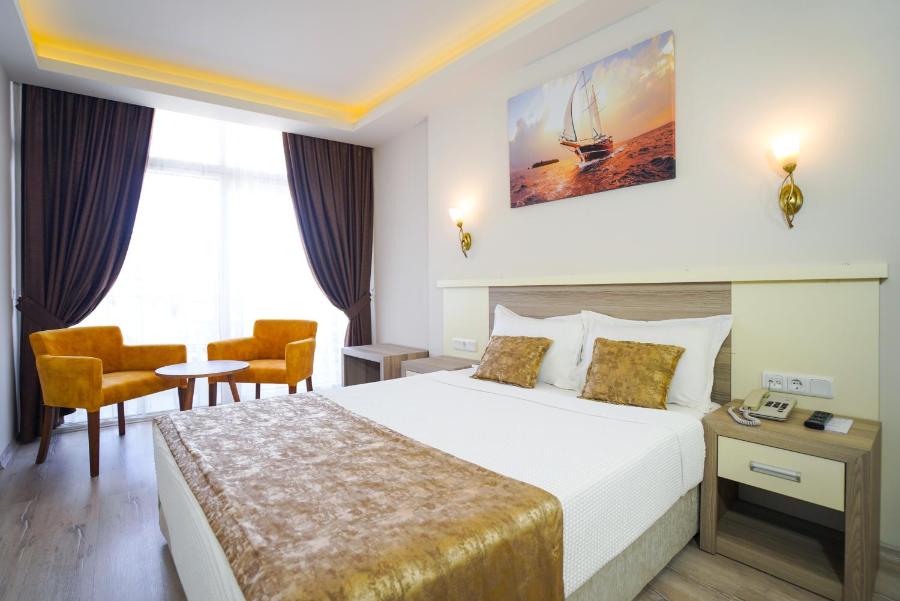 Doté d'une piscine extérieure, le Seren Sari Hotel se trouve à seulement 2 minutes de marche de la plage de Marmaris. Il propose un petit-déjeuner buffet traditionnel turc, un bar au bord de la piscine proposant des collations tout au long de la journée et une connexion Wi-Fi gratuite dans le hall.