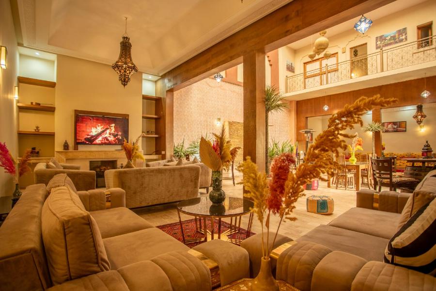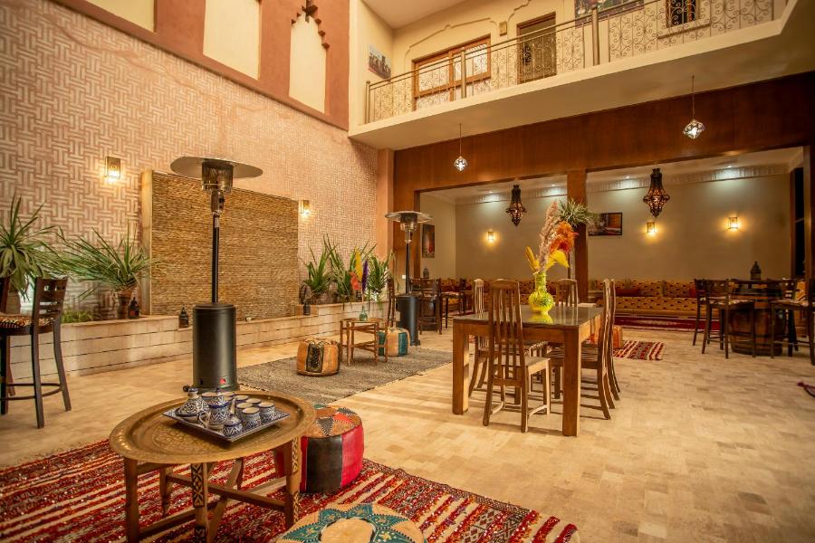 Chaque matin, le riad sert un petit-déjeuner continental et végétarien composé de plats chauds, de spécialités locales et de viennoiseries fraîches. Vous pourrez vous détendre dans le salon de l'établissement et des paniers-repas sont également disponibles.