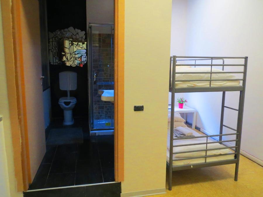 Toutes les chambres présentent des intérieurs colorés et certaines donnent accès à une salle de bains commune.