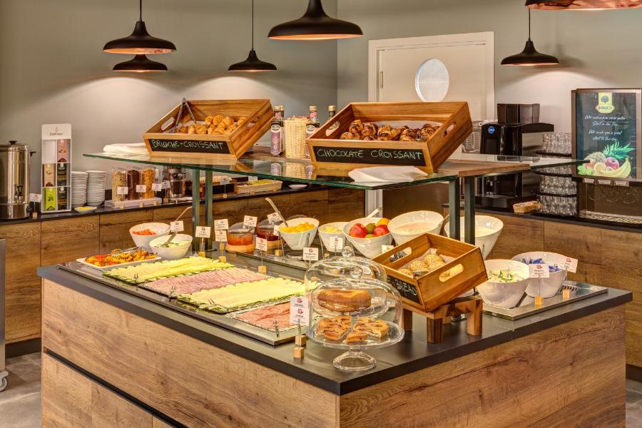 Le petit-déjeuner est servi sous forme de buffet et se compose de plats sucrés et salés.