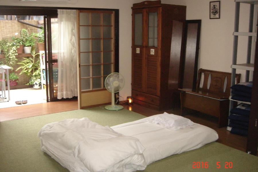 L'établissement dispose de futons de style japonais. La maison d'hôtes assure un service de prêt de vélos. Le château d'Osaka et l'Osaka-jo Hall sont accessibles en 10 minutes en train depuis la gare JR Hanaten.