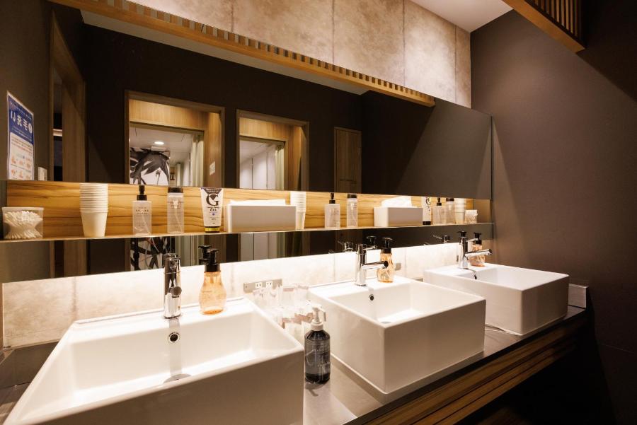 Un bain public et un bain en plein air sont disponibles de 15h00 à 3h00 (le lendemain) à l'HOTEL Cargo Shinsaibashi. Des articles de toilette, notamment du shampoing, de l'après-shampoing et du démaquillant, sont fournis pour votre confort. À chaque étage, vous trouverez des toilettes et une salle d'eau ultramodernes.