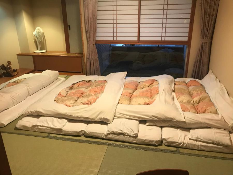 Les chambres du Kuramoto Hotel sont pourvues d'un mobilier japonais simple, avec notamment une table basse avec des coussins au sol. Elles sont équipées d'un réfrigérateur, d'une bouilloire électrique accompagnée de thé vert et d'une salle de bains privative.