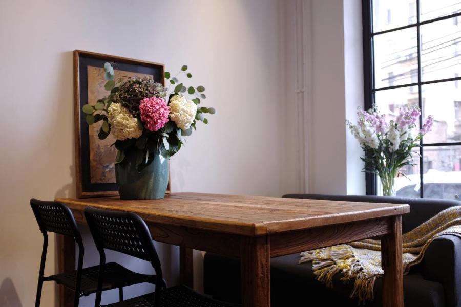 Elle est dotée d'une connexion Wi-Fi gratuite, d'un comptoir de bar unique, d'un café frais et élégant, d'un sol aux tons chauds, d'un mobilier et de plantes vives pour vous assurer de vous sentir chaleureux, confortable, pratique et gratuit.