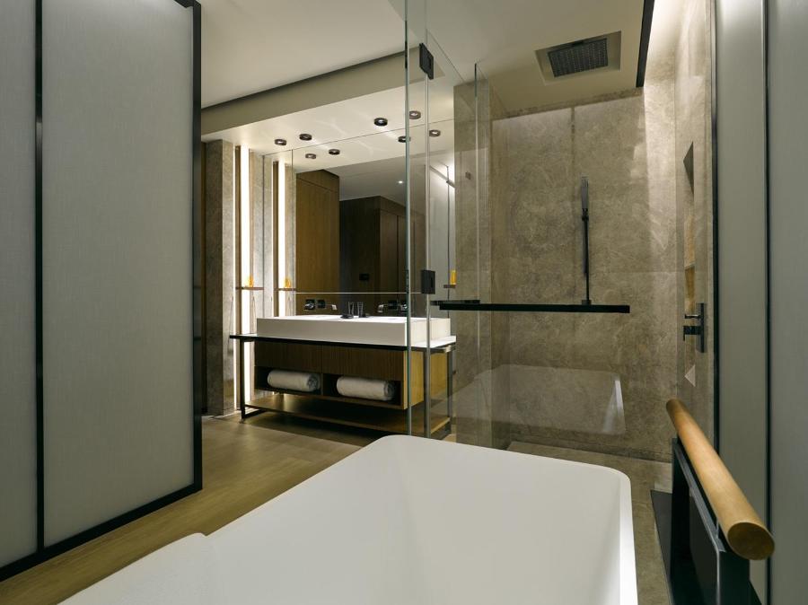 Chaque chambre dispose d'un dressing, d'une télévision, d'un coffre-fort et d'un mobilier artisanal de marque.