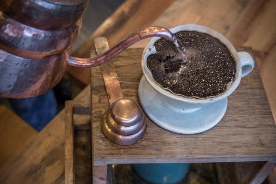 Le petit-déjeuner et du café bio local sont servis dans le café du hall.