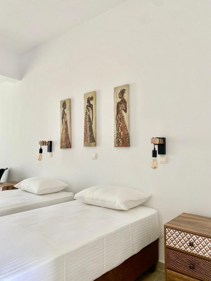 Toutes les chambres de l'hôtel Fikas disposent d'un balcon donnant sur le jardin et la piscine ou le paysage de Naxos. Chacune dispose de la climatisation, d'un réfrigérateur, d'une télévision et d'une radio.