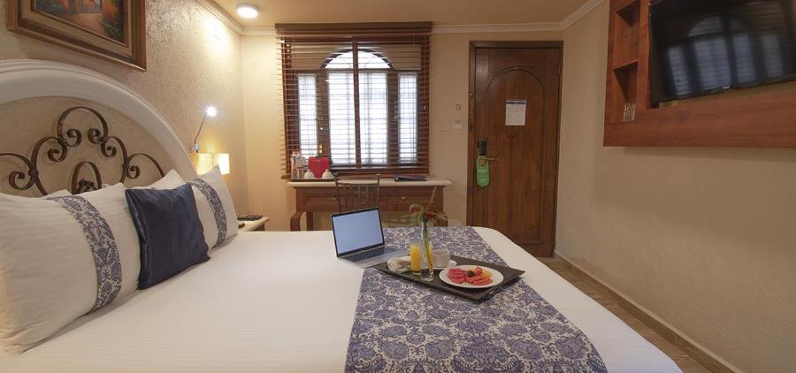 Les chambres de l'Hotel Arcángel Puebla disposent de la climatisation à réglage individuel et d'une télévision à écran plat. Chacune est également équipée d'un coffre-fort.