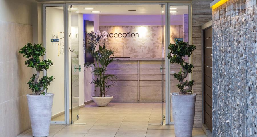 Situé au coeur de la ville de Rhodes, à moins d'un km du port, le Majestic Hotel possède une piscine avec une terrasse bien exposée et un snack-bar. Il vous propose de lumineux hébergements, dotés d'un balcon privé donnant sur la piscine ou les environs.