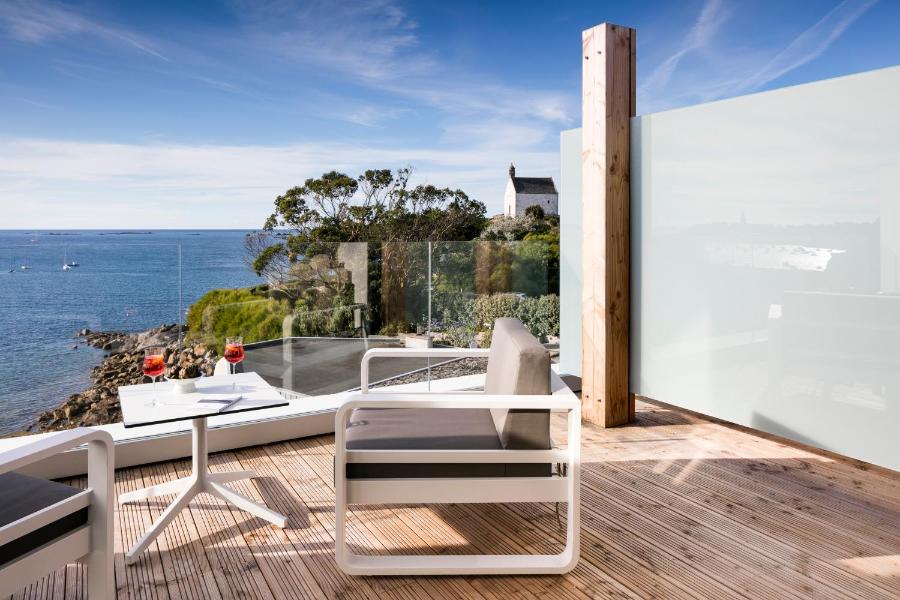 Le restaurant étoilé au guide Michelin est spécialisé dans les plats de fruits de mer. Vous pourrez prendre un verre au bar de l'hôtel ou sur la terrasse offrant une vue sur la mer, la vieille ville et l'île de Batz.