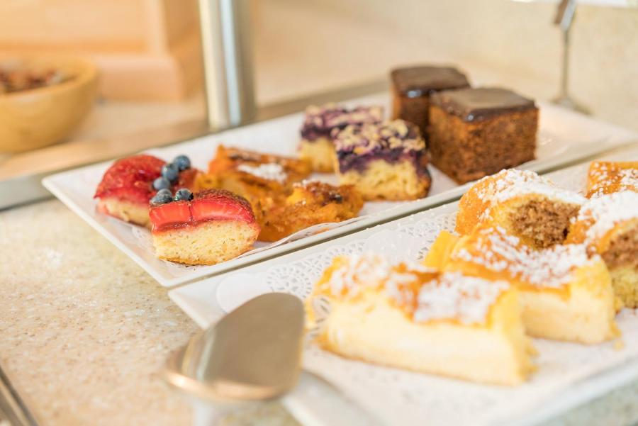 Composé de gâteaux faits maison, le petit-déjeuner buffet est servi chaque matin dans le jardin d'hiver ou sur la terrasse. Vous pourrez par ailleurs déguster du café et des gâteaux l'après-midi.