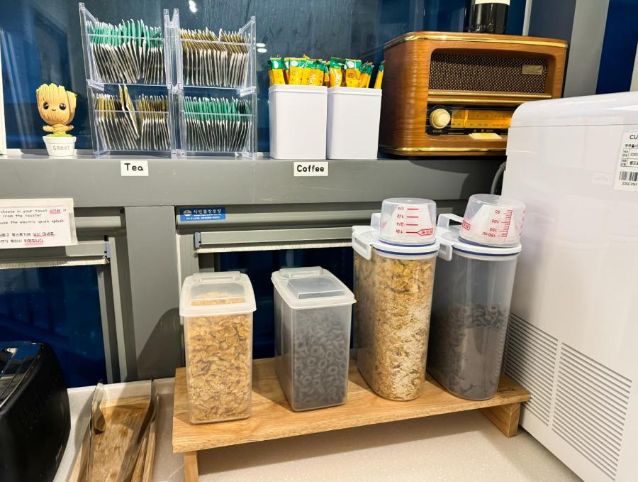 Cet hôtel capsule sert un petit-déjeuner américain.