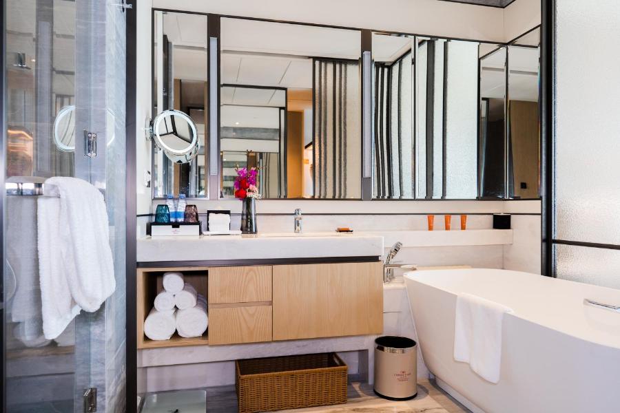 All units at the hotel come with air conditioning, a seating area, a flat-screen TV with satellite channels, a safety deposit box and a private bathroom with a shower, free toiletries and a hairdryer. At Crowne Plaza Shenzhen Nanshan, an IHG Hotel every room comes with bed linen and towels.