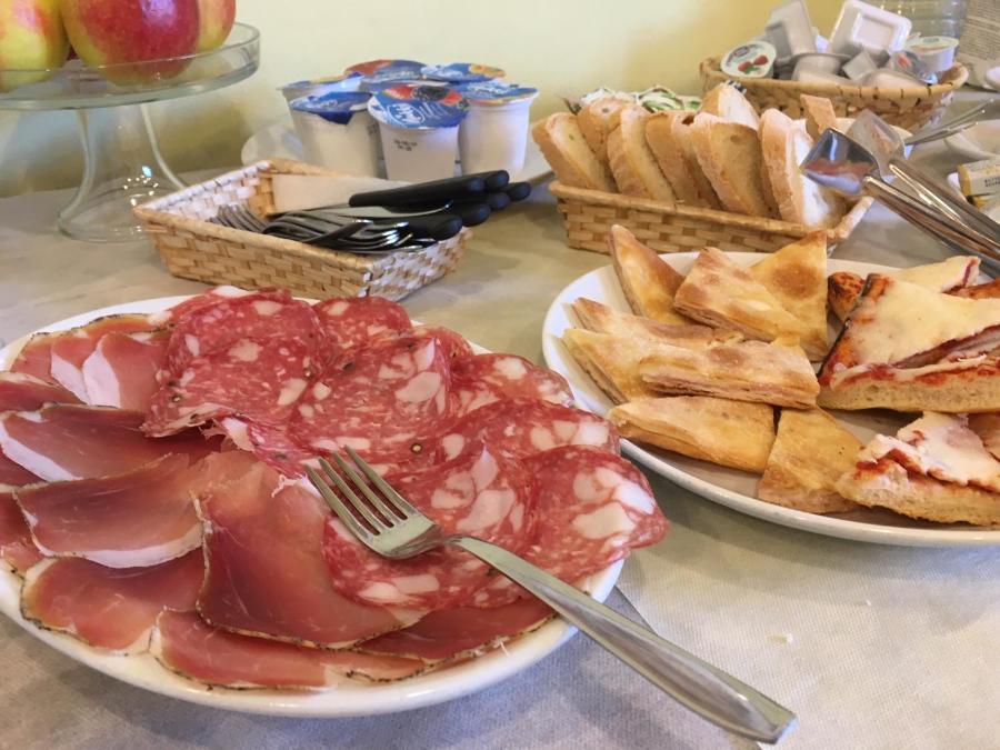 Un petit-déjeuner italien sucré est servi tous les jours si vous réservez une chambre. Il se compose de boissons chaudes et froides ainsi que de croissants.