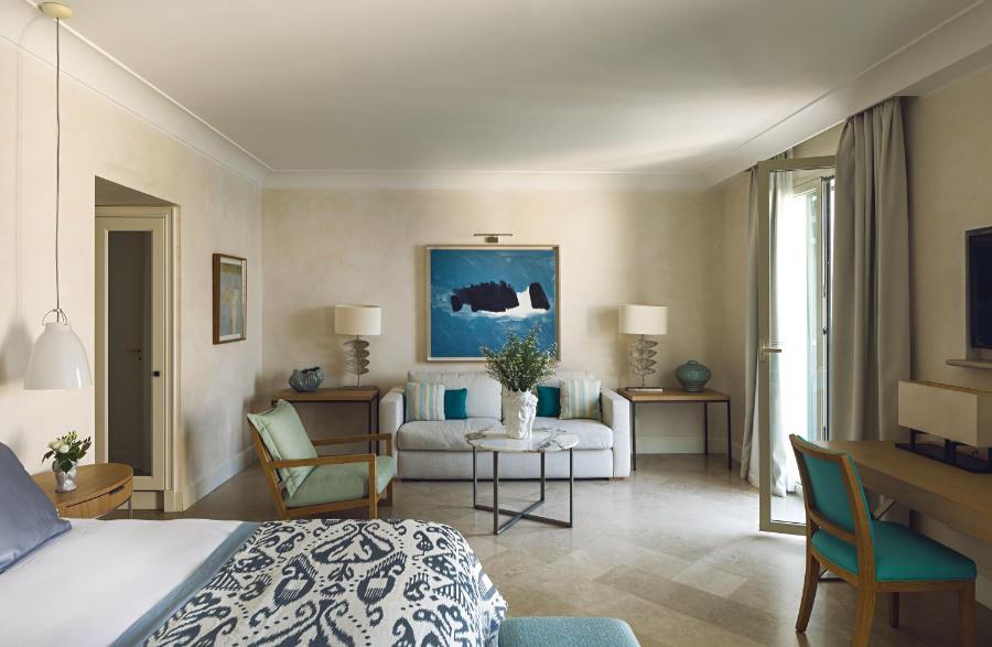 The elegant rooms and suites are decorated with refined fabrics and antique furniture. Each one comes with free Wi-Fi, plus Acqua di Parma bathroom toiletries. Most accommodation comes with a furnished sea-view balcony.