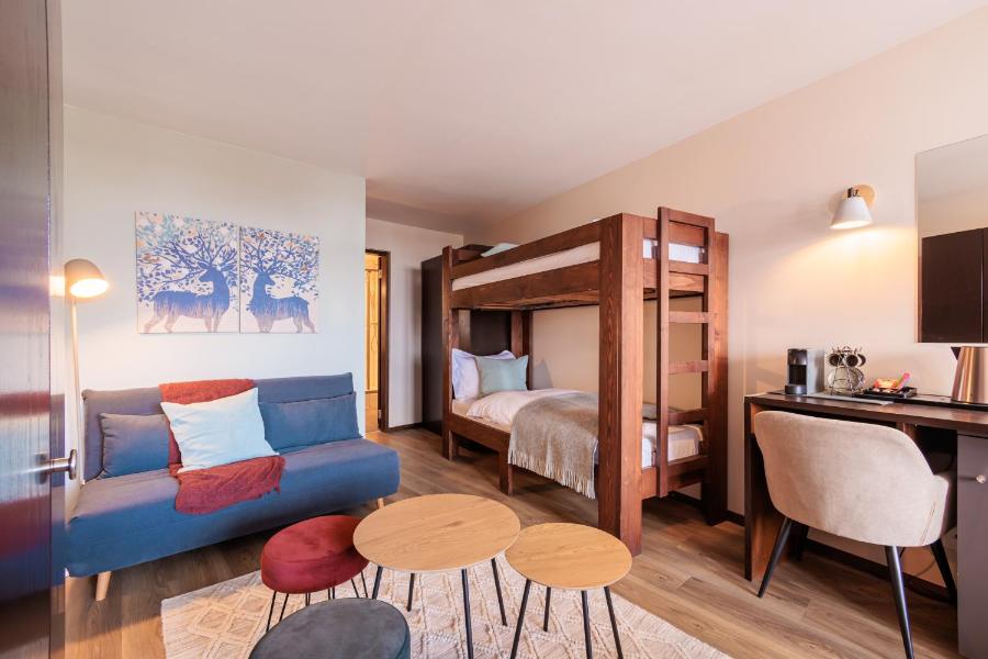 Les logements de l'hôtel sont équipés d'une bouilloire. Les chambres sont équipées d'une machine à café, d'une télévision à écran plat et d'une connexion Wi-Fi gratuite. Certaines possèdent un balcon et d'autres offrent une vue sur la montagne. Elles comprennent également un réfrigérateur.