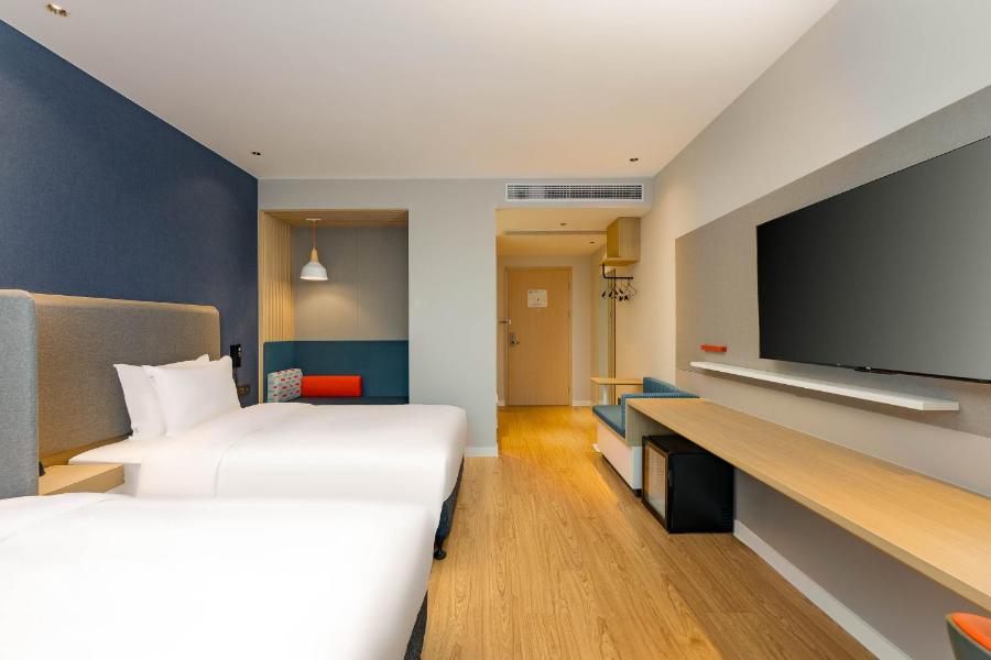 The rooms in the hotel are fitted with a flat-screen TV with cable channels. Rooms are fitted with a private bathroom with a shower, free toiletries and a hairdryer. At Holiday Inn Express Wuxi East Station, an IHG Hotel the rooms come with bed linen and towels.