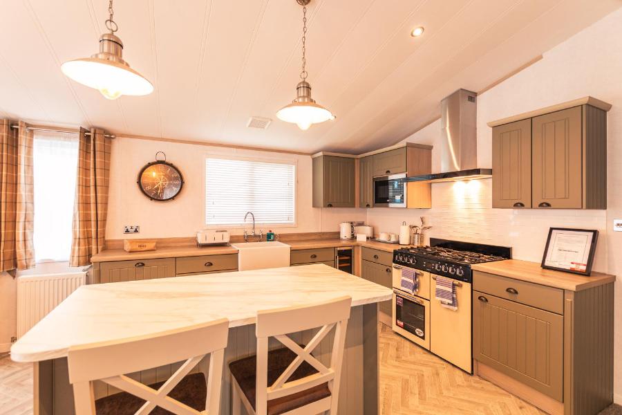 Doté d'un balcon avec vue sur le lac, ce lodge comprend 2 chambres, un salon, une télévision par satellite à écran plat, une cuisine équipée et 2 salles de bains avec douche et bain à remous. Les serviettes et le linge de lit sont fournis.